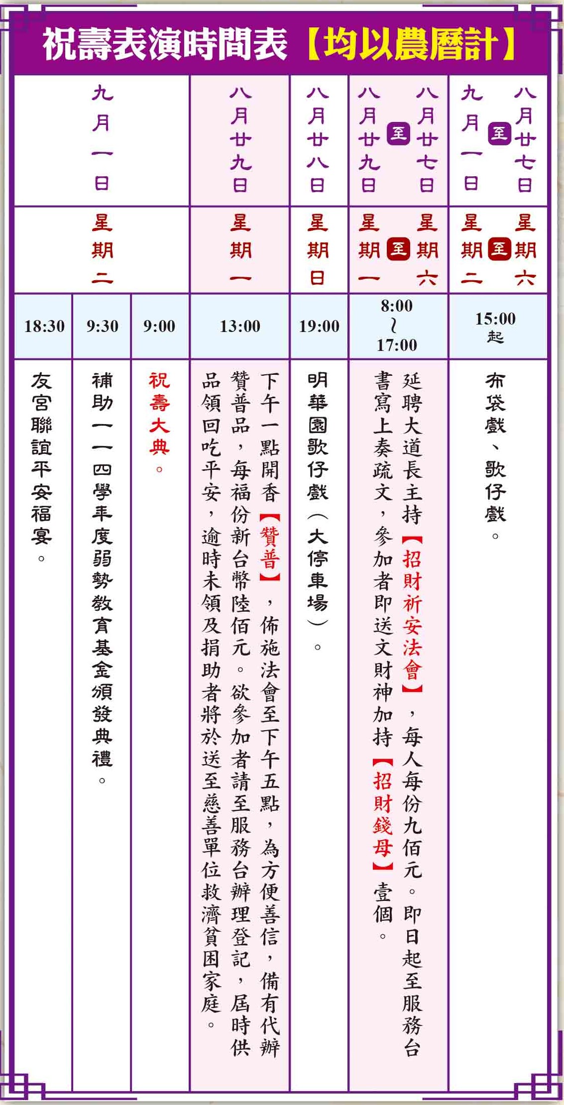 2025年(乙巳年)農曆9/1恭祝文財神聖誕祝壽表演時間表